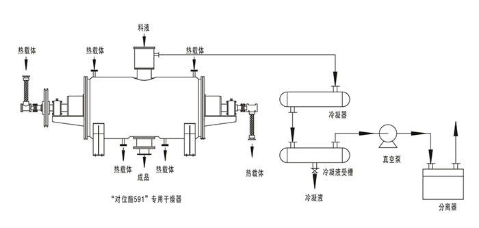 對(duì)位酯是一種干燥后為灰白色粉末,干燥過程為黏糊狀的物料,它是活性染料的重要中間體,用于合成EF型、KN型、 MKM型、ME型等含乙烯基活性染料,由于該物料在干燥過程中極其粘稠,所以對(duì)設(shè)備的攪拌軸要求極高,公司根據(jù)這種物 料,研發(fā)出針對(duì)此種物料“對(duì)位酯591”專用干燥器,能在真空狀態(tài)下對(duì)物料進(jìn)行加熱,利用攪拌軸不斷更新?lián)Q熱界面,使物料受熱均勻,提高換熱效率。而且該機(jī)操作方便,大大降低了勞動(dòng)強(qiáng)度。